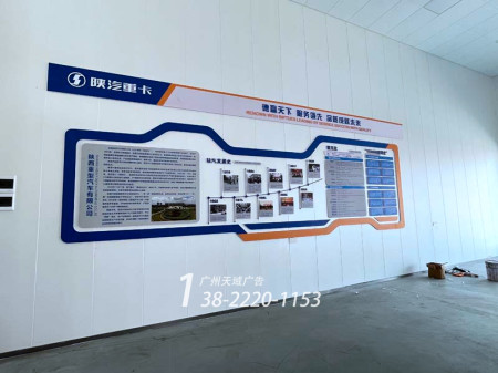 实地考察:根据现场测量,按照陕汽重卡的VI,广州招牌设计公司设计门头招牌及室内装饰工程,材料均采用设计师建议