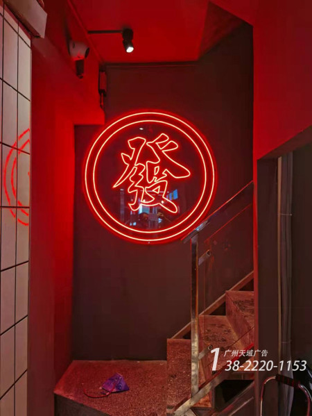 主要材质:亚克力不锈钢发光;底用铝扣板,UV软膜灯箱、霓虹灯带字等