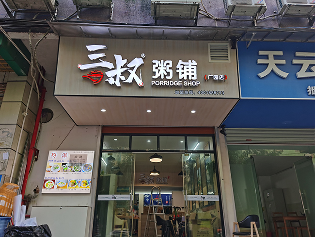 详细内容: 客户类型 餐饮 项目地点 广州 项目时间 2021年 广告牌材质 门头招牌:亚克力不锈钢发光字 广告灯箱:UV软膜灯箱